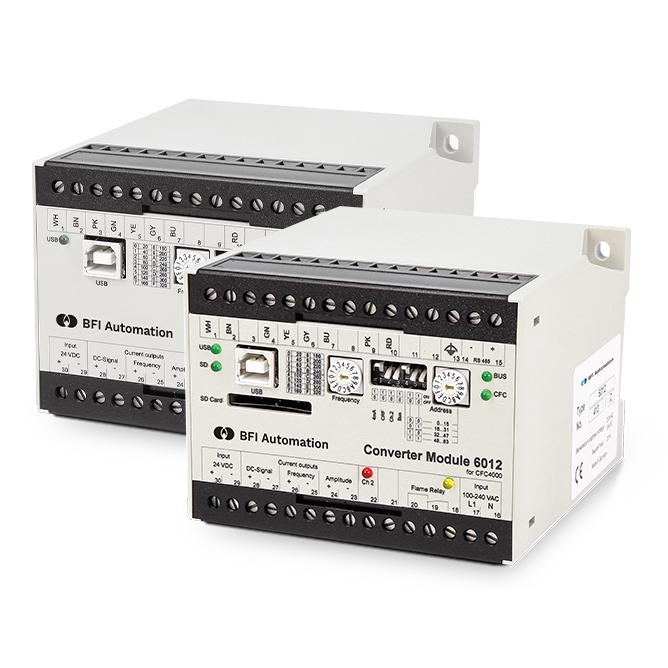 Die Konverter-Box x012 bietet die Möglichkeit insgesamt drei Stromausgänge auszuwerten. Mit dem Flammenrelais der Konverter-Box sind sehr hohe Schaltleistungen möglich. Mit einer SD-Karte lassen sich alle auswertbaren Daten des CFC 3000 aufzeichnen.
